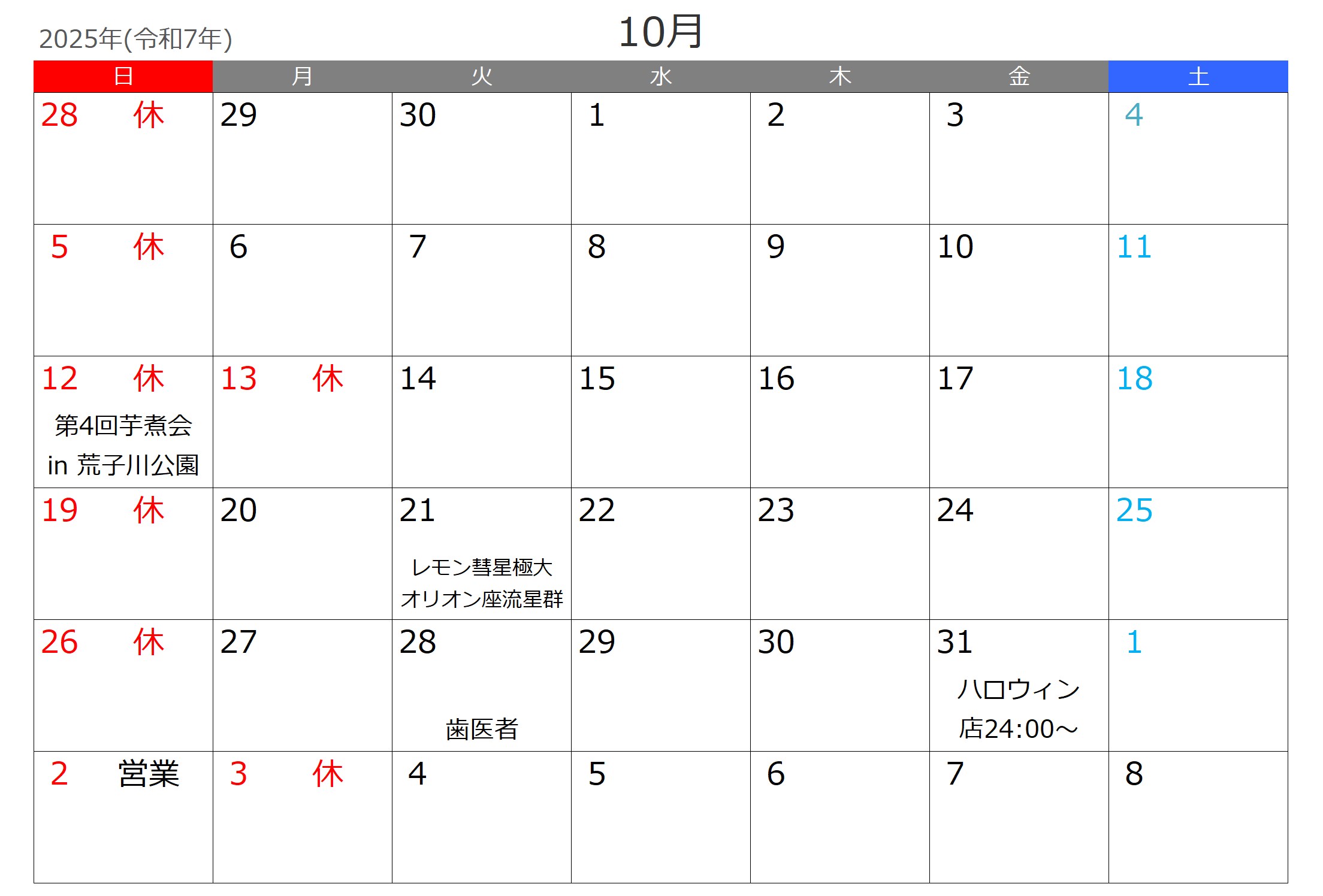 ●11日(日)営業