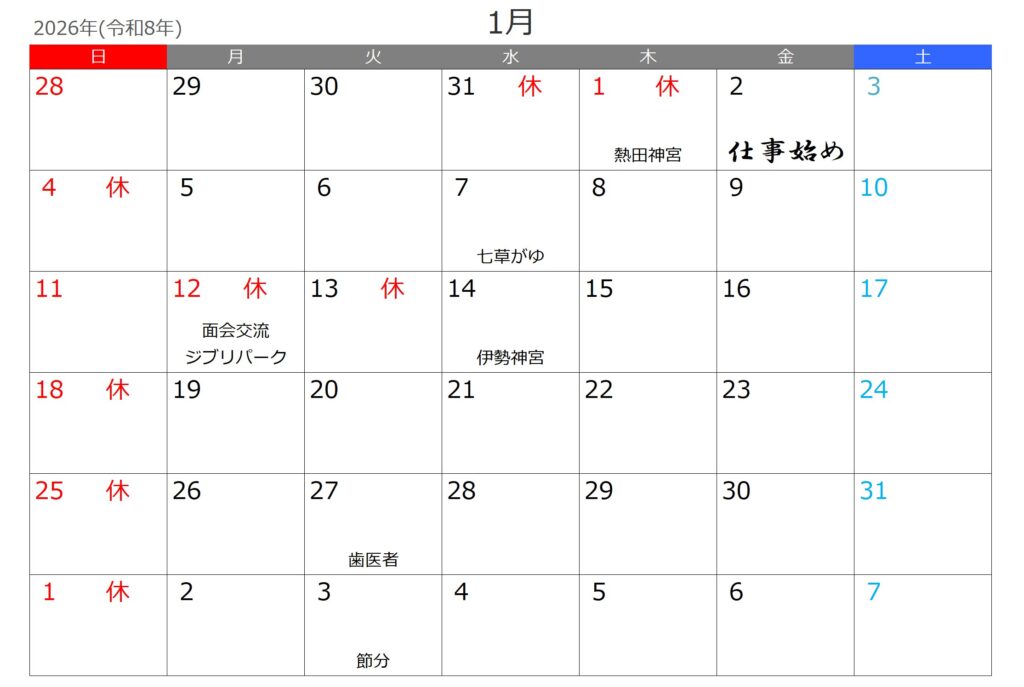 今年の仕事始めは1月2日(金)からです